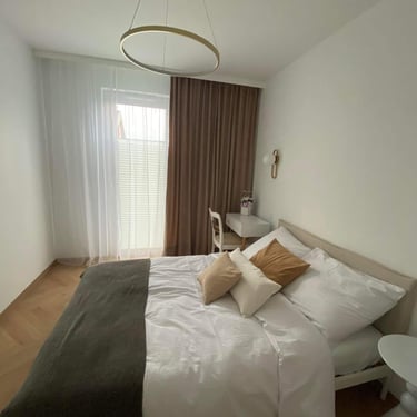 Komfort i wygoda: Oferujemy przestronny apartament z sypialnią , w pełni wyposażonym aneksem kuchennym z lodówką i zmywarką oraz przytulnym salonem z telewizorem z płaskim ekranem. Apartament posiada również nowoczesną łazienkę z prysznicem. Ręczniki i pościel są wliczone w cenę pobytu.