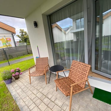 Relaks na świeżym powietrzu: Do dyspozycji naszych gości oddajemy przestronny taras, idealny na poranną kawę lub wieczorny relaks.