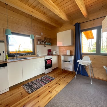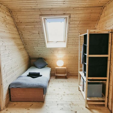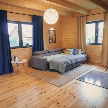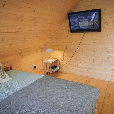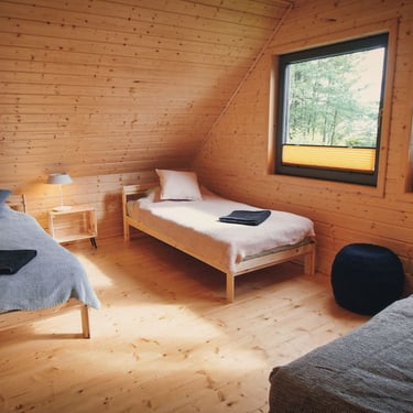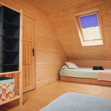 Dom dysponuje trzema sypialniami na piętrze, które są doskonale dostosowane do potrzeb naszych gości. Pierwsza sypialnia wyposażona jest w łóżko małżeńskie, idealne dla par. Druga, przechodnia, posiada dwa pojedyncze łóżka. Trzecia sypialnia to prawdziwy raj dla dzieci - z czterema pojedynczymi łóżkami, telewizorem, konsolą Xbox One i dużą ilością słońca.