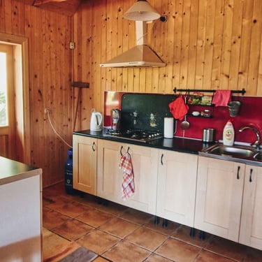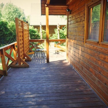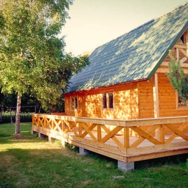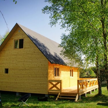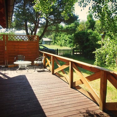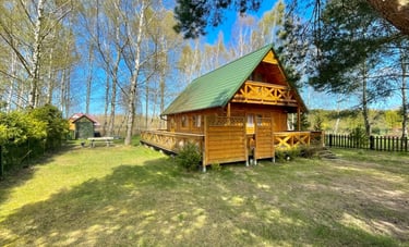 Ten drewniany, przestronny domek o powierzchni 83m2, przeznaczony dla 9 osób, otoczony jest brzozowym drzewostanem i posiada ogromny, 45-metrowy taras.