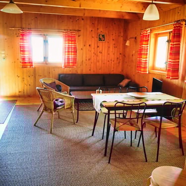 Na parterze znajduje się duży salon z aneksem kuchennym oraz łazienka. Poddasze oferuje 2 sypialnie - jedną dużą z balkonem i czterema pojedynczymi łóżkami oraz mniejszą z podwójnym łóżkiem. Parter oferuje dodatkowo 3 miejsca do spania.